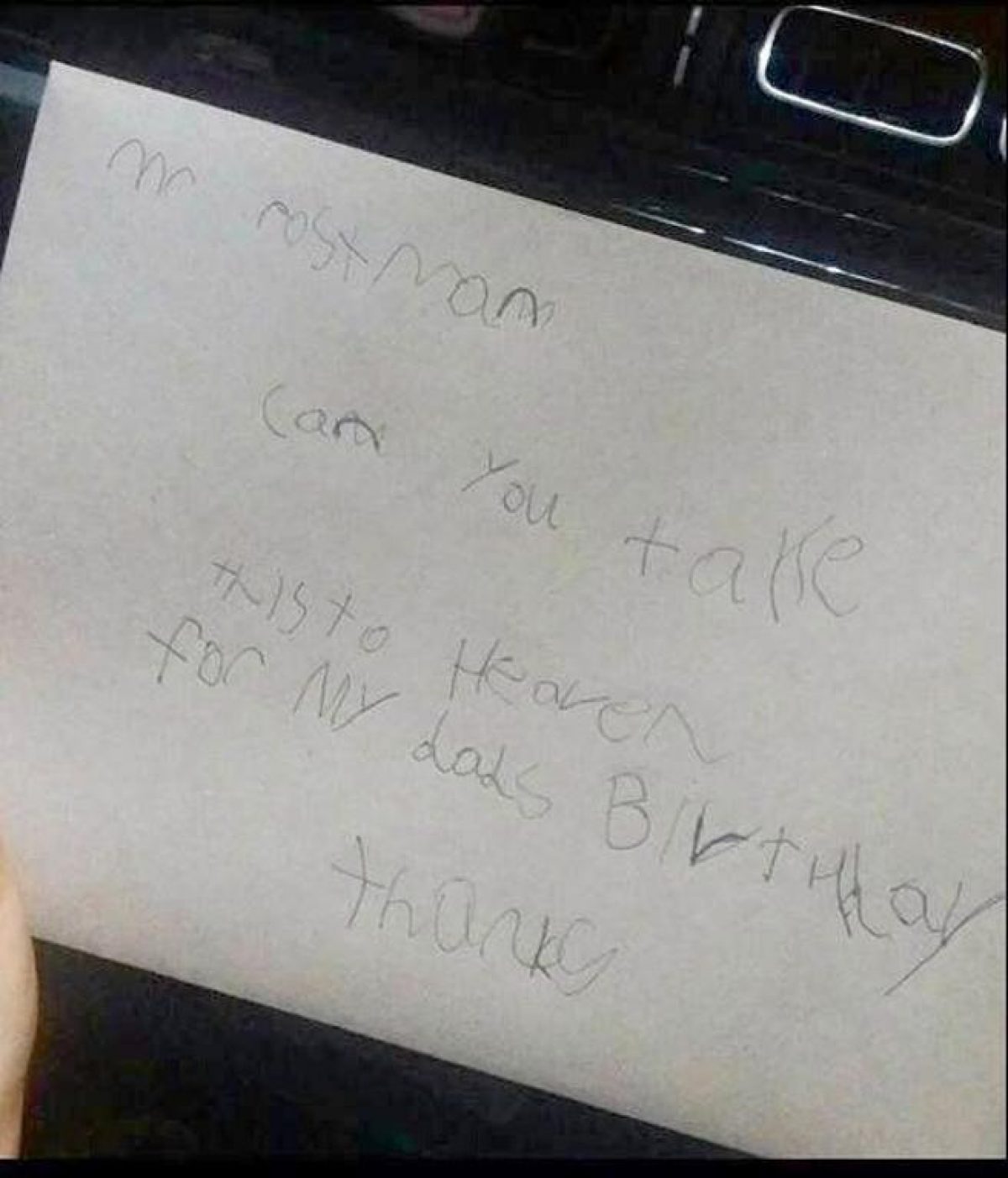 Un niño de 7 años llamado Jase Hyndman dejó una carta en el correo para que sea enviada "al cielo" y llegue a su padre fallecido, quien hace algunas semanas estuvo de cumpleaños.Días después recibió una inesperada respuesta que lo llenó de esperanza. Desde Royal Mail contestaron su carta afirmando que pese a que fue difícil "evitar las estrellas y otros objetos galácticos en la ruta hacia el cielo", el mensaje llegó a manos de su padre.