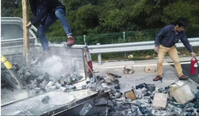 El karma instantáneo se cebó con un conductor chino que arrojó una colilla desde la ventanilla y acabó prendiendo fuego, de manera accidental, a la parte trasera de su furgoneta.