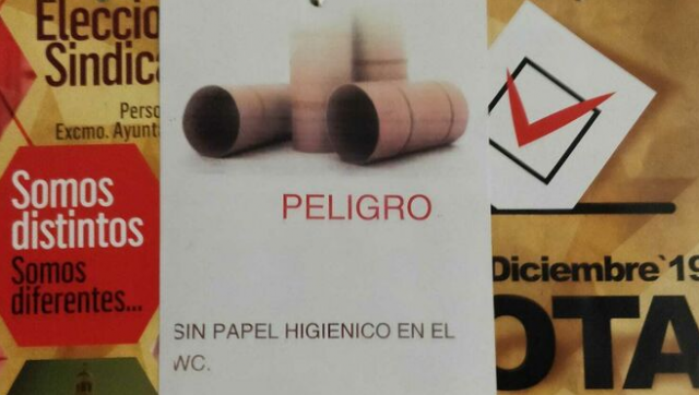 “Peligro. Sin papel higiénico en el WC”, se puede leer en la nota.